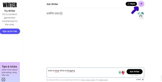 When you click on the write button, it creates the text very quickly.