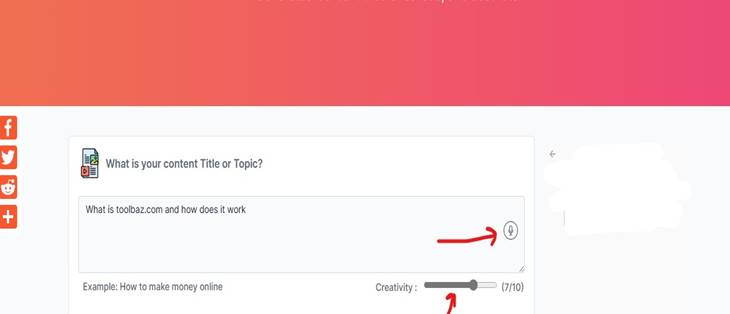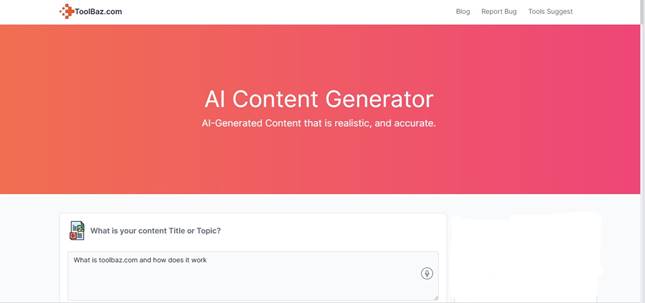 To use ToolBaz AI Content Generator, simply visit the website. Then enter a few details about the content you want to generate in the text box.