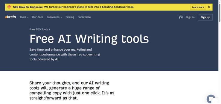 Ahrefs AI writer is very fast and it works without any login or ads.