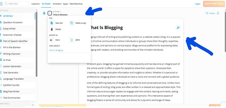 Class Ace AI also has post-generation tools to help you improve your content.